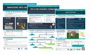 Comme la plupart des EEE, l’iguane commun a la capacité d’occuper une grande diversité de niches écologiques. Or, pour différentes raisons (accessibilité, autorisations, vulnérabilité des milieux gérés…), une seule technique ne peut que très rarement, si ce n’est jamais, être utilisée partout où l’EEE cible est présente. Le développement de protocoles intégrant différentes modalités de gestion est donc essentiel pour optimiser les chances de succès de la lutte et permettre à différents publics d’y participer. Ainsi, en réponse à ce constat, le projet REMMICoM propose désormais un arsenal d’outils, accompagné de fiches techniques afin de faciliter la réplicabilité des différents protocoles selon les contextes.