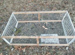 Le piégeage des iguanes était auparavant peu expérimenté et l’un des objectifs du projet était de tester une modalité de capture passive dans les espaces urbains, littoraux, portuaires, au pied de falaises et dans les espaces privés. Quatre sites ont été sélectionnés pour expérimenter cette technique et des « pièges à battants » appâtés ont été conçus pour être adapté au gabarit des iguanes (Fig. 4). Un suivi par caméra à détecteur de mouvements complétait le dispositif afin d’effectuer une analyse du nombre d’iguanes observés en fonction de la distance aux pièges. Au total, 31 iguanes ont été capturés grâce à cette technique sur les 543 observés sur les sites de piégeage. Cette technique peu couteuse peut être préconisée lorsque les captures à la canne et le tir ne sont pas possibles. Toutefois elle implique une mobilisation rigoureuse des opérateurs pour la relève quotidienne des pièges et leur appâtage, pour une efficacité variable selon les sites.