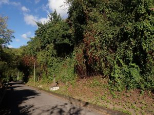 La fréquence des suivis a dû être augmentée par rapport à ce qui était prévu du fait de l’intensité de recolonisation des lianes exotiques envahissantes. Des visites hebdomadaires ont par conséquent été réalisées pour contrôler la réinvasion constatée d’A. leptopus, qui recouvrait plus de 90% de la surface totale du chantier. Un arrachage systématique des parties aériennes et un retrait des bulbes ont, dans la mesure du possible, été réalisés pour permettre l’épuisement des individus et réduire la surface de reprise. Depuis décembre 2026, soit après 9 semaines d’arrachage hebdomadaire, une diminution de la recolonisation a été constatée. Toutefois, d’autres EEE, à l’expansion moins importante qu’A leptopus sont réapparues suite à la gestion de cette dernière. Combretum indicum, un petit arbuste scandant, a notamment largement repoussé sur les zones de pentes, près d’un adulte mature fertile. Mucuna pruriens (Poil à gratter) a également été signalé, mais cette EEE étant annuelle, l’invasion n’a pas vraiment fait l’objet d’une lutte ciblée, puisqu’elle disparait après la saison sèche. Toutefois, sa présence peut compliquer le suivi des EEE en raison de ses nombreux poils urticants présents sur les fruits mûrs. Ainsi, les plantules de cette espèce sont retirées dès leur détection.