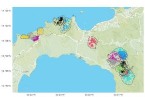 En avril-mai 2025, l’analyse du suivi par télémétrie de 16 femelles de mangoustes localisées sur deux sites, Pointe Rouge (n = 9) et Morne Pavillon (n = 11) a montré que, leur domaine vital couvre une surface moyenne de 10 ha, variant fortement entre individus (de 3 à 23 ha). Par ailleurs, la densité en rats noirs sur Pointe Rouge et sur Morne Pavillon, réestimée lors de cette session, était assez faible < 10 rats/ha, confirmant les fortes fluctuations interannuelles chez cette espèce dans ces habitats tropicaux.